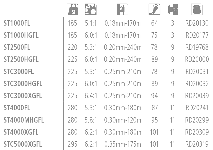 Stradic 2500 FL, Stradic 2500 HG FL, Stradic C3000 FL, Stradic C3000 HG FL, Stradic C3000 XG FL, Stradic 4000 XG FL