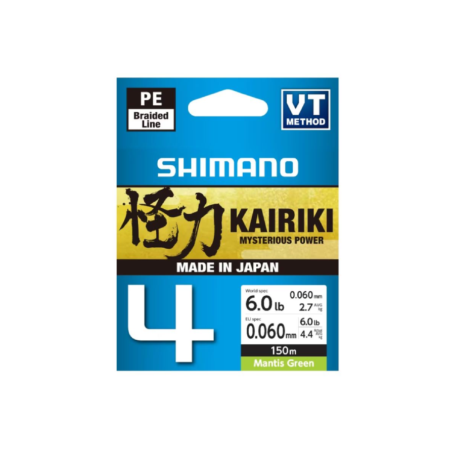| Trenzado Shimano | Kairiki 4 150m Mantis Green Ø0,06mm, Kairiki 4 150m Mantis Green Ø0,10mm, Kairiki 4 150m Mantis Green Ø0,13mm, Kairiki 4 150m Mantis Green Ø0,16mm |