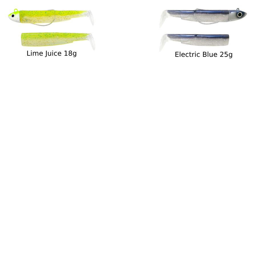 Combo Shallow 6g Khaki, Combo Shore 12g Khaki, Combo Shore 12g Blanc RH, Combo Shore 12g Electric Blue, Combo Shore 12g Fluo Yellow, Combo Shore 12g Green Glitter, Combo Shore 12g Wakasagi, Combo Search 18g Khaki, Combo Search 18g Lime Juice, Combo Offshore 25g Electric Blue