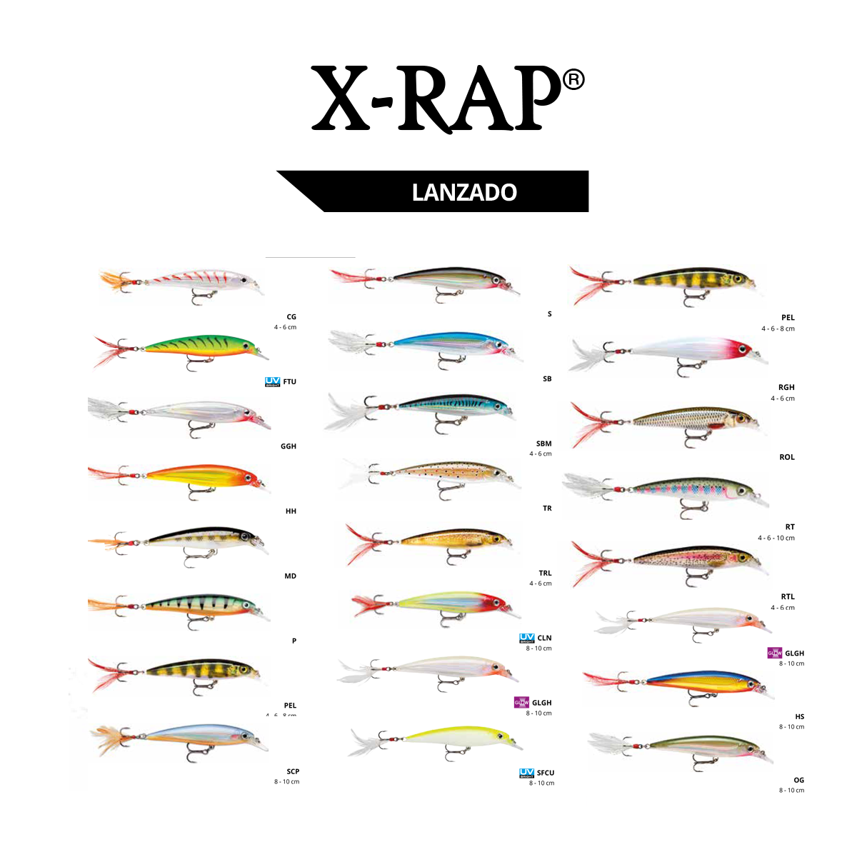 El X-Rap®lo es” todo acerca de la acción”. Es el tamaño perfecto, la forma y la ilusión 3D de un alevin. Escamas prominentes y línea lateral que refleja como un faro. Se puede pescar tanto en una técnica agresiva “Slashbait®” o con un clásico bamboleo de Rapala. El pescador define la cadencia para obtener la máxima efectividad. Las versiones pequeñas de X-Rap® son ideales para apuntar a especies más pequeñas, o para grandes depredadores que son delicados y no muerden señuelos más grandes.